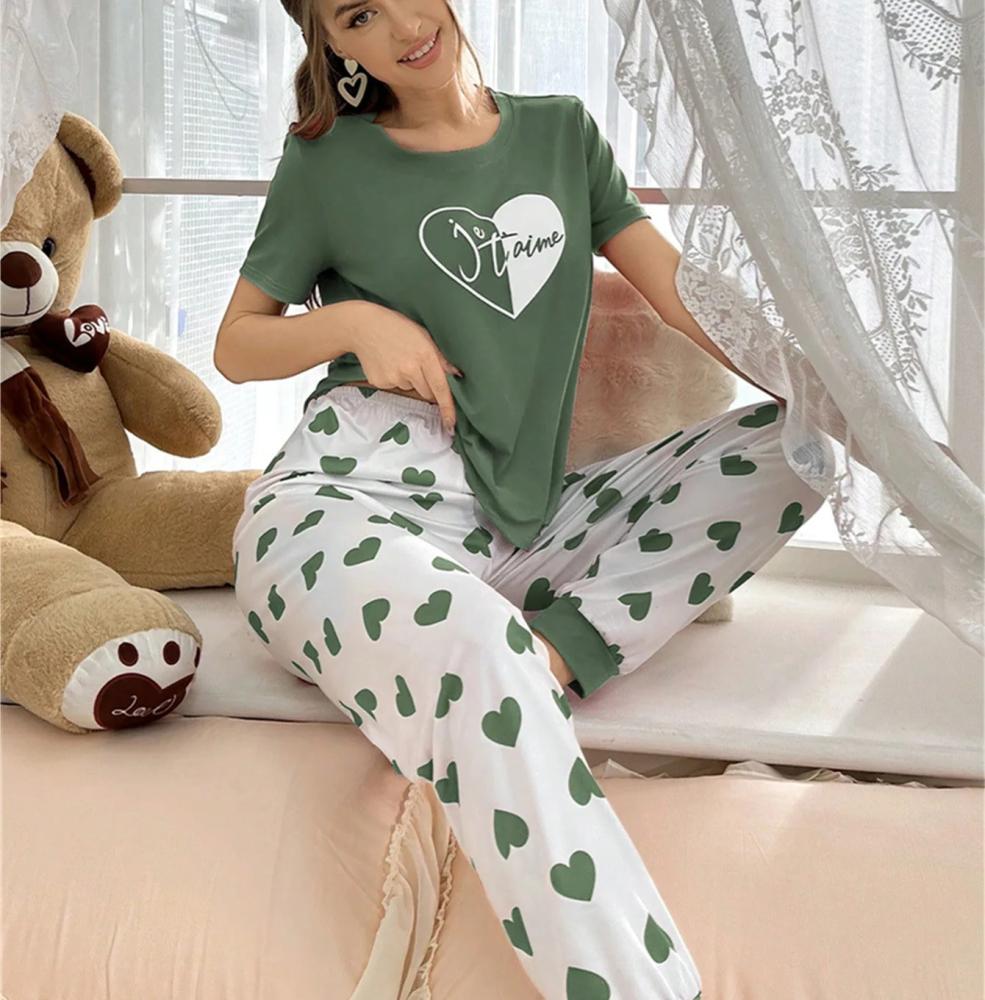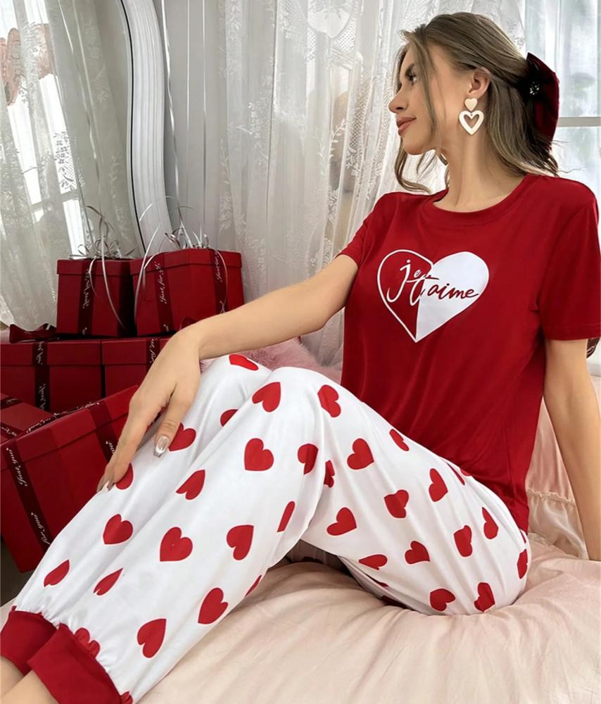 - بيجامة طباعة قلوب مثالية للاستخدام اليومي والاسترخاء المنزلي مع مظهر أنيق وبسيط يعكس الذوق الراقي.
